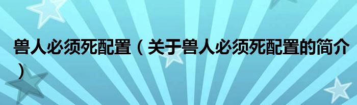 大家好,獸人必須死配置,關(guān)于獸人必須死配置的簡(jiǎn)介很多人還不知道,現(xiàn)在讓我們一起來(lái)看看吧!
