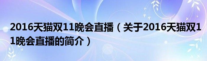 本文關于2016天貓雙11晚會直播的簡介就講解完畢,希望對大家有所幫助。
