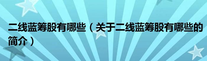 本文關于二線藍籌股有哪些的簡介就講解完畢,希望對大家有所幫助。