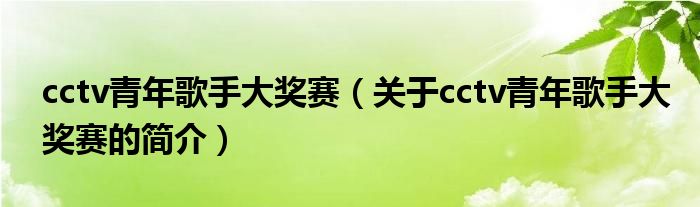 本文關于cctv青年歌手大獎賽的簡介就講解完畢,希望對大家有所幫助。
