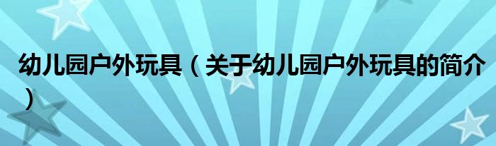 本文關于幼兒園戶外玩具的簡介就講解完畢,希望對大家有所幫助。