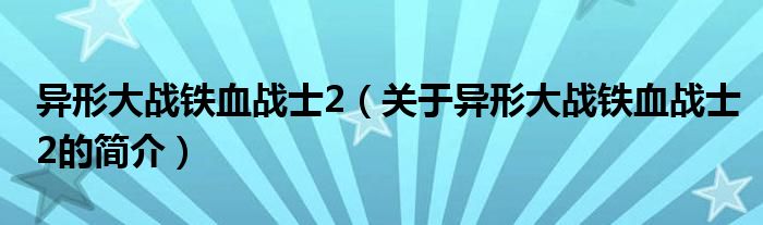 本文關于異形大戰鐵血戰士2的簡介就講解完畢,希望對大家有所幫助。