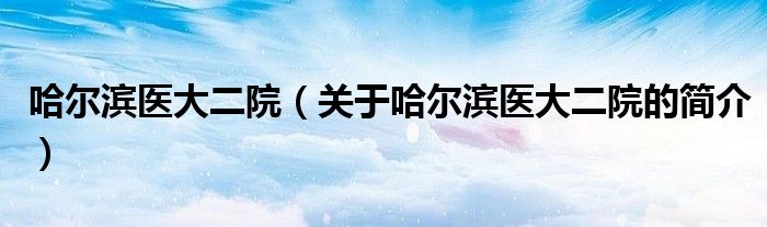 本文關于哈爾濱醫(yī)大二院的簡介就講解完畢,希望對大家有所幫助。