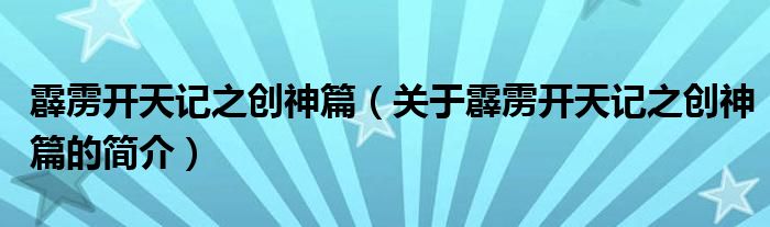 本文關(guān)于霹靂開天記之創(chuàng)神篇的簡(jiǎn)介就講解完畢,希望對(duì)大家有所幫助。