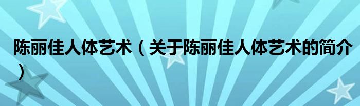 本文關(guān)于陳麗佳人體藝術(shù)的簡介就講解完畢,希望對大家有所幫助。
