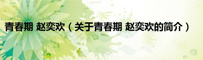 本文關于青春期 趙奕歡的簡介就講解完畢,希望對大家有所幫助。
