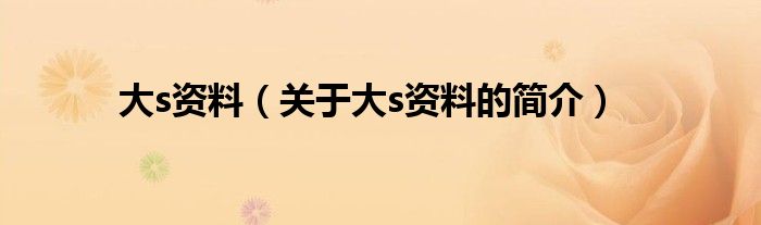 本文關于大s資料的簡介就講解完畢,希望對大家有所幫助。