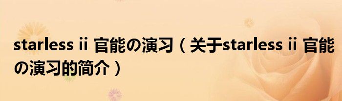 本文關于starless ii 官能の演習的簡介就講解完畢,希望對大家有所幫助。