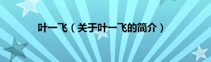 大家好,葉一飛,關(guān)于葉一飛的簡介很多人還不知道,現(xiàn)在讓我們一起來看看吧!