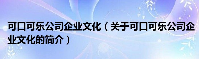 本文關于可口可樂公司企業文化的簡介就講解完畢,希望對大家有所幫助。