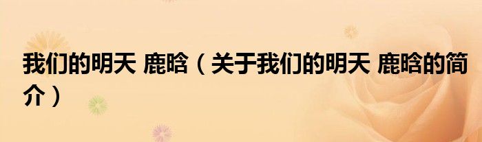 本文關(guān)于我們的明天 鹿晗的簡介就講解完畢,希望對大家有所幫助。