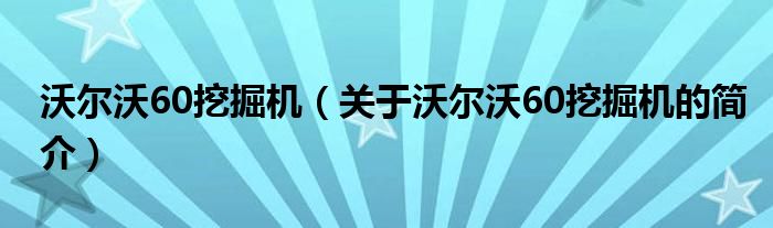 本文關于沃爾沃60挖掘機的簡介就講解完畢,希望對大家有所幫助。