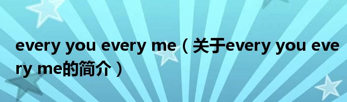 大家好,every you every me,關于every you every me的簡介很多人還不知道,現在讓我們一起來看看吧!
