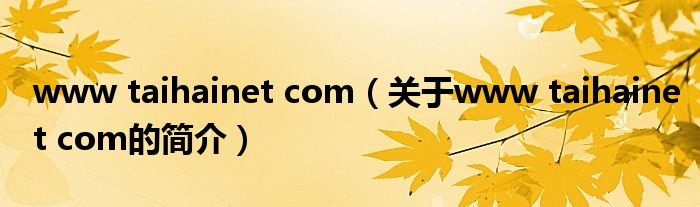 本文關(guān)于www taihainet com的簡(jiǎn)介就講解完畢,希望對(duì)大家有所幫助。