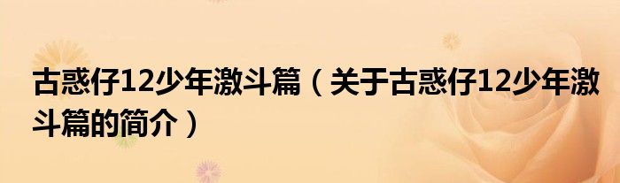 本文關(guān)于古惑仔12少年激斗篇的簡介就講解完畢,希望對大家有所幫助。