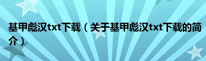 大家好,基甲彪漢txt下載,關于基甲彪漢txt下載的簡介很多人還不知道,現在讓我們一起來看看吧!