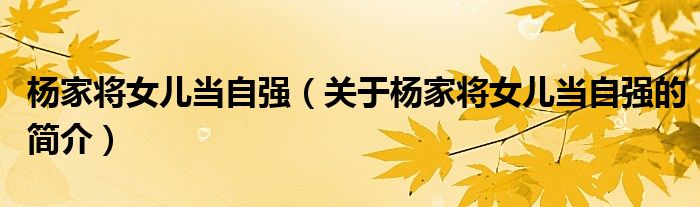 本文關于楊家將女兒當自強的簡介就講解完畢,希望對大家有所幫助。
