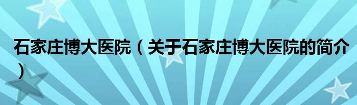本文關于石家莊博大醫院的簡介就講解完畢,希望對大家有所幫助。