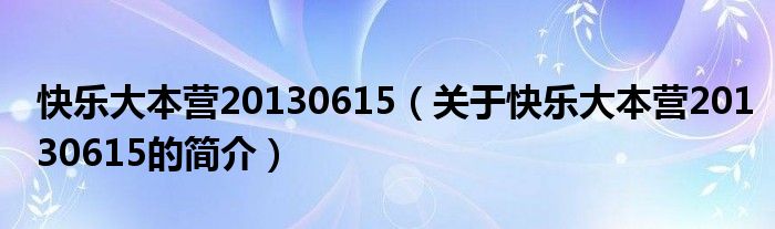 大家好,快樂大本營20130615,關于快樂大本營20130615的簡介很多人還不知道,現在讓我們一起來看看吧!
