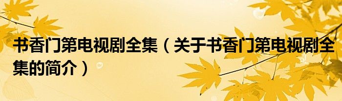 本文關于書香門第電視劇全集的簡介就講解完畢,希望對大家有所幫助。