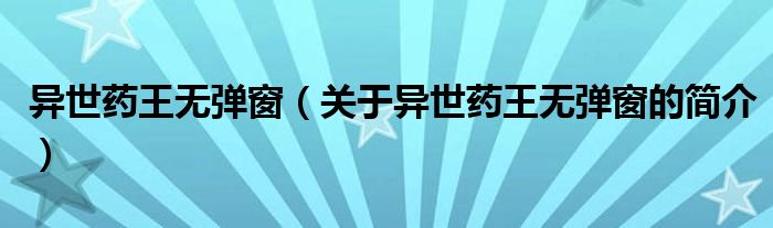 本文關于異世藥王無彈窗的簡介就講解完畢,希望對大家有所幫助。
