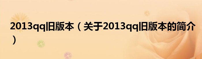 本文關(guān)于2013qq舊版本的簡介就講解完畢,希望對(duì)大家有所幫助。