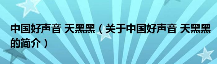 本文關于中國好聲音 天黑黑的簡介就講解完畢,希望對大家有所幫助。