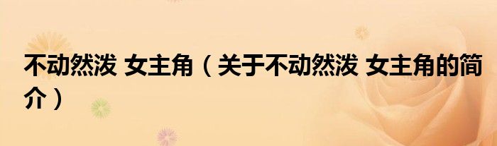 本文關于不動然潑 女主角的簡介就講解完畢,希望對大家有所幫助。