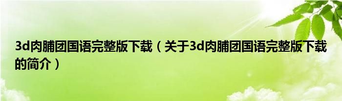 本文關于3d肉脯團國語完整版下載的簡介就講解完畢,希望對大家有所幫助。