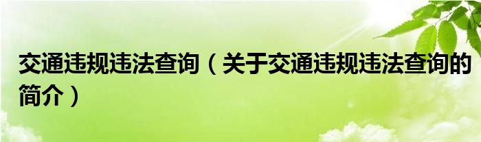 本文關于交通違規違法查詢的簡介就講解完畢,希望對大家有所幫助。