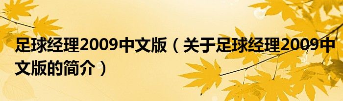 本文關于足球經(jīng)理2009中文版的簡介就講解完畢,希望對大家有所幫助。