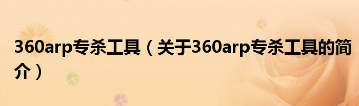 大家好,360arp專殺工具,關于360arp專殺工具的簡介很多人還不知道,現在讓我們一起來看看吧!