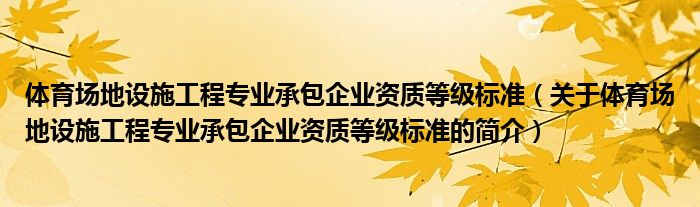 本文關于體育場地設施工程專業承包企業資質等級標準的簡介就講解完畢,希望對大家有所幫助。