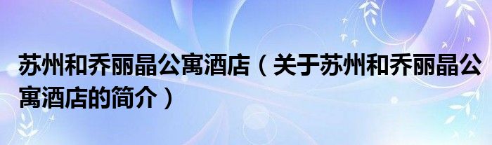 本文關于蘇州和喬麗晶公寓酒店的簡介就講解完畢,希望對大家有所幫助。