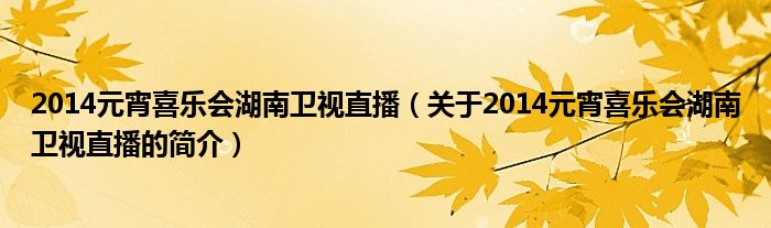本文關于2014元宵喜樂會湖南衛(wèi)視直播的簡介就講解完畢,希望對大家有所幫助。