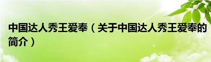 大家好,中國達人秀王愛奉,關于中國達人秀王愛奉的簡介很多人還不知道,現在讓我們一起來看看吧!