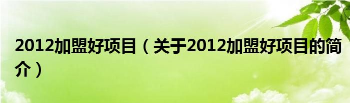 本文關于2012加盟好項目的簡介就講解完畢,希望對大家有所幫助。
