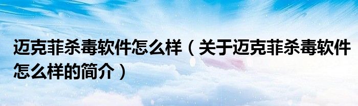 本文關(guān)于邁克菲殺毒軟件怎么樣的簡介就講解完畢,希望對大家有所幫助。