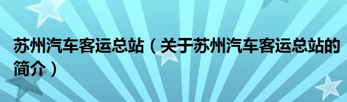 本文關于蘇州汽車客運總站的簡介就講解完畢,希望對大家有所幫助。
