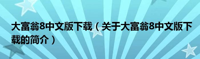 本文關于大富翁8中文版下載的簡介就講解完畢,希望對大家有所幫助。