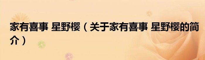 大家好,家有喜事 星野櫻,關(guān)于家有喜事 星野櫻的簡介很多人還不知道,現(xiàn)在讓我們一起來看看吧!