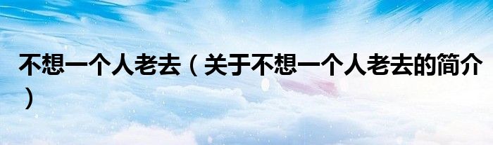 大家好,不想一個人老去,關于不想一個人老去的簡介很多人還不知道,現在讓我們一起來看看吧!