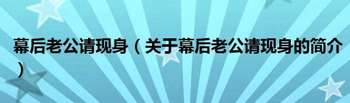 大家好,幕后老公請現身,關于幕后老公請現身的簡介很多人還不知道,現在讓我們一起來看看吧!