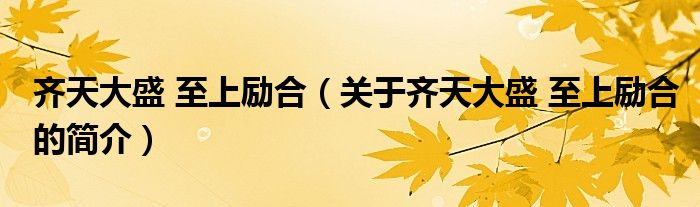 大家好,齊天大盛 至上勵合,關(guān)于齊天大盛 至上勵合的簡介很多人還不知道,現(xiàn)在讓我們一起來看看吧!