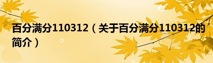 本文關于百分滿分110312的簡介就講解完畢,希望對大家有所幫助。