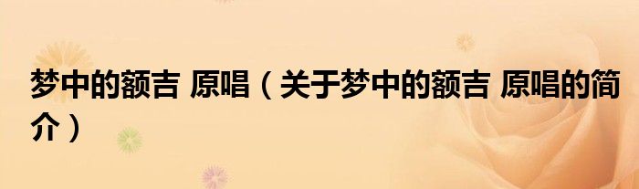 本文關于夢中的額吉 原唱的簡介就講解完畢,希望對大家有所幫助。