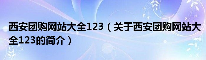 本文關于西安團購網站大全123的簡介就講解完畢,希望對大家有所幫助。