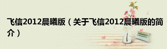 大家好,飛信2012晨曦版,關于飛信2012晨曦版的簡介很多人還不知道,現在讓我們一起來看看吧!