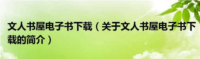 本文關于文人書屋電子書下載的簡介就講解完畢,希望對大家有所幫助。