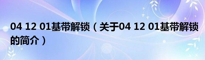 大家好,04 12 01基帶解鎖,關(guān)于04 12 01基帶解鎖的簡介很多人還不知道,現(xiàn)在讓我們一起來看看吧!